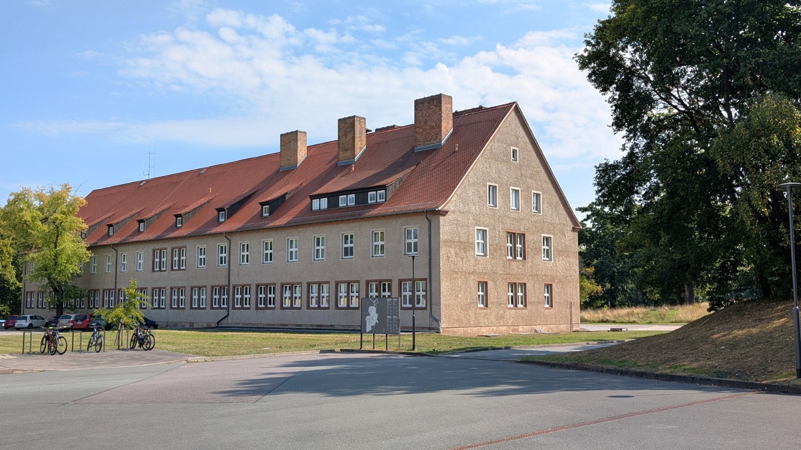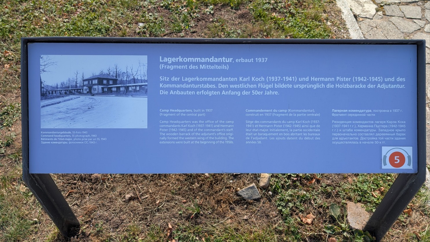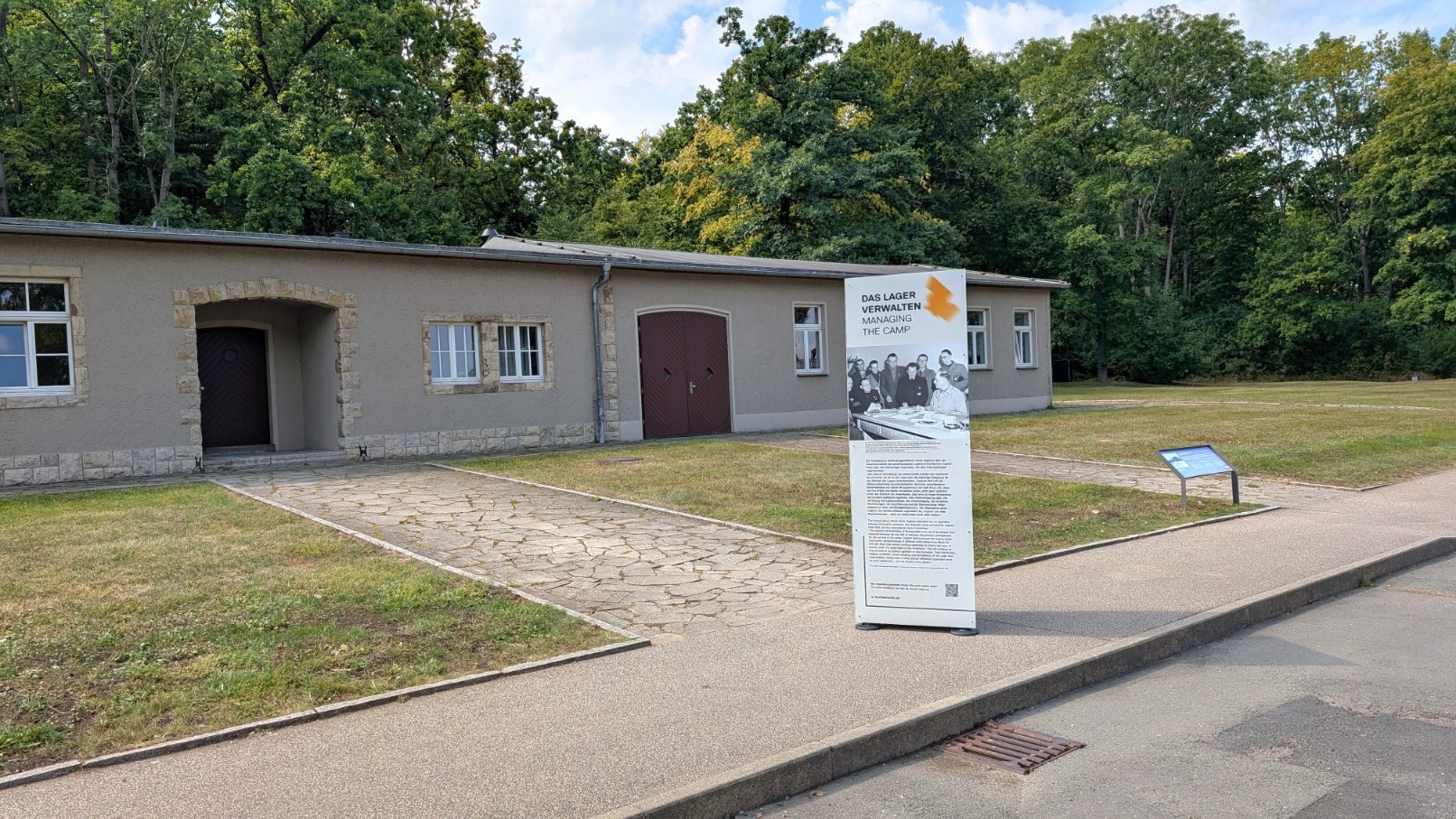 Die Kommandantur am Südrand des Lagers war die zentrale Schaltstelle der Lagerführung. Von hier aus lenkten der Kommandant und sein Stab sämtliche Abläufe: die Einteilung und Abmarsch der Arbeitskommandos, die Organisation der täglichen Zählvorgänge auf dem Appellplatz, aber auch die Verhängung und Durchführung von Strafen. In den Büros der Kommandantur liefen die Verwaltungsstränge zusammen, hier wurden Akten geführt, Transportlisten erstellt und Befehle erteilt. Nach außen wirkte das Gebäude wie ein nüchternes Verwaltungszentrum, tatsächlich aber war es das Herz der Terrororganisation in Buchenwald – jener Ort, an dem bürokratische Routine und tödliche Konsequenzen untrennbar ineinandergriffen.