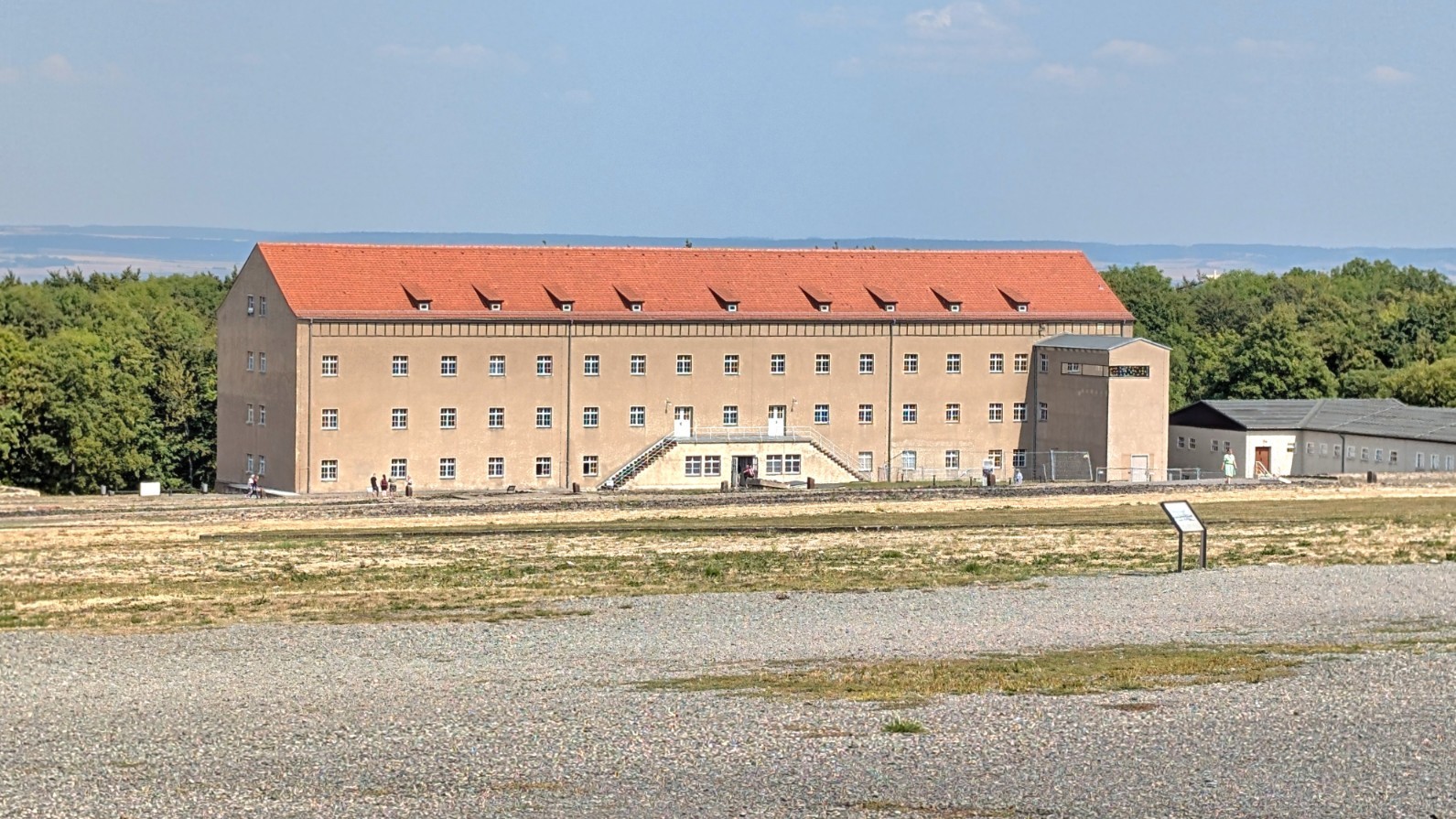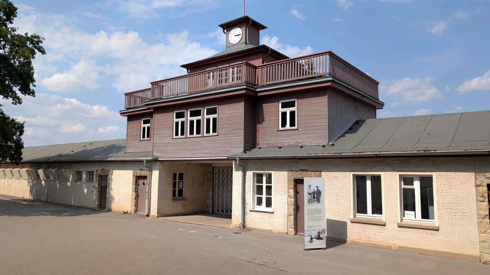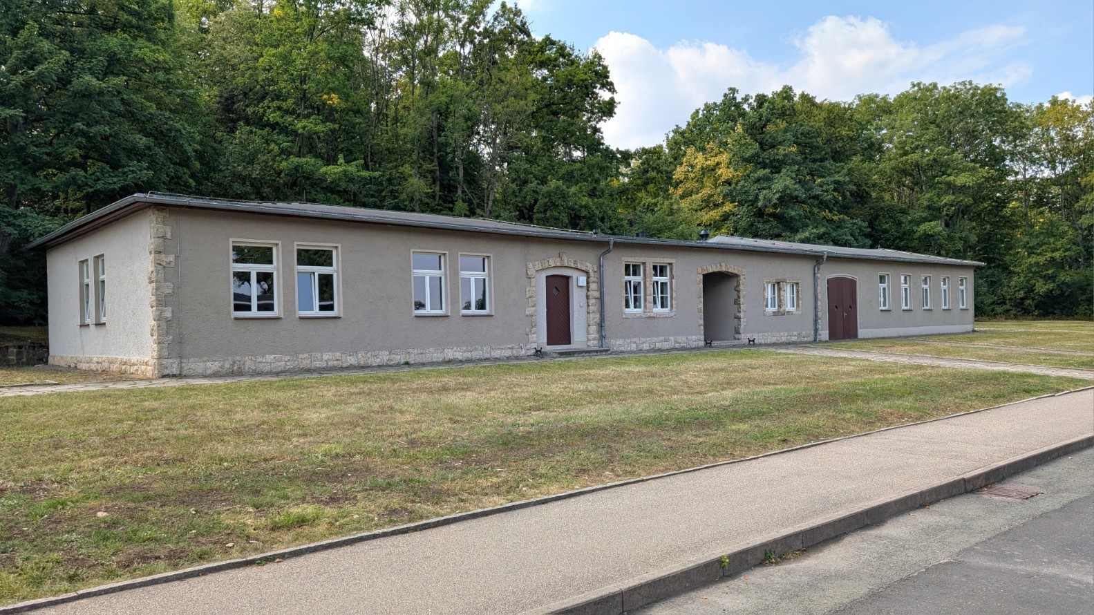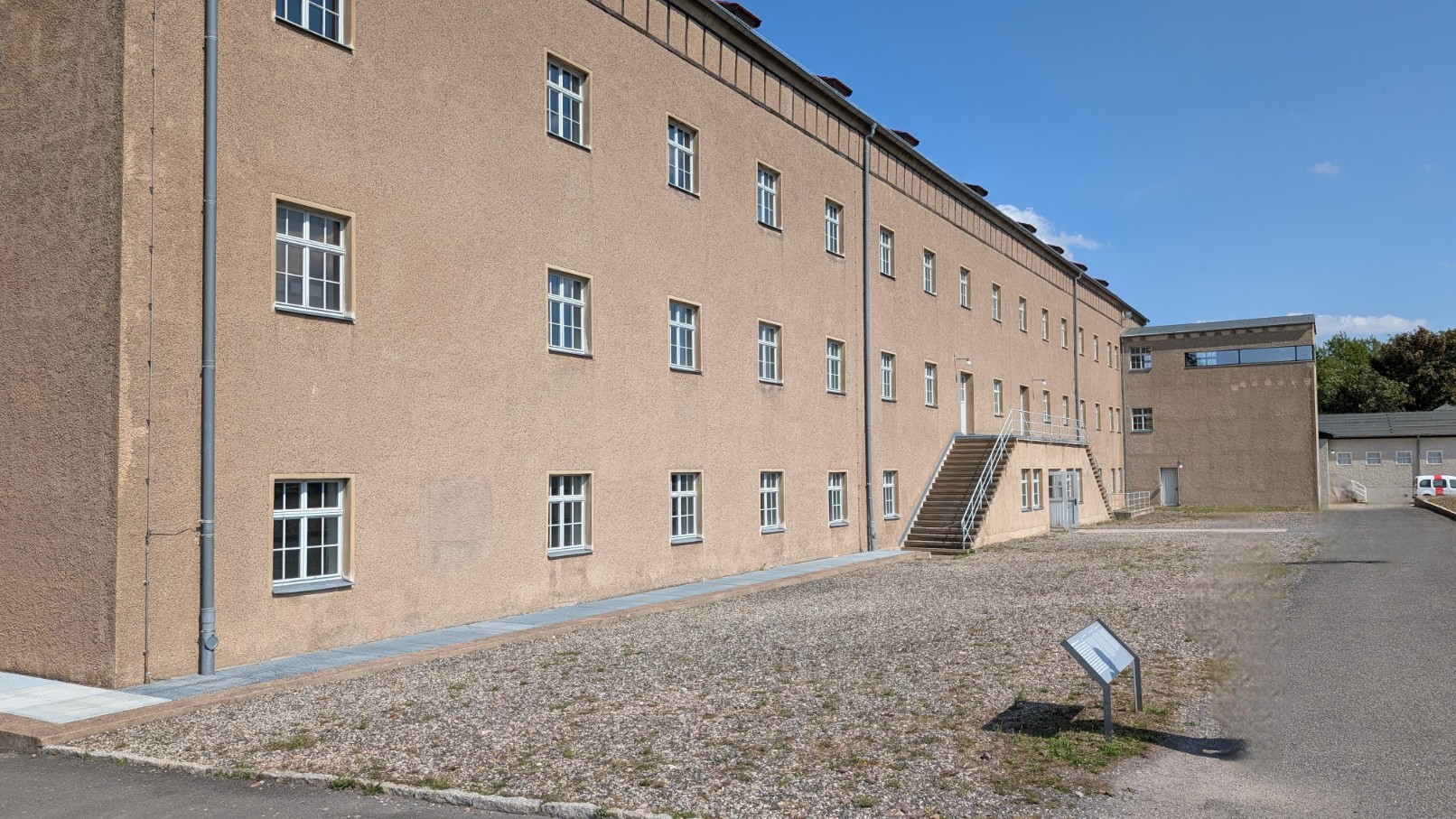 Die Kommandantur am Südrand des Lagers war die zentrale Schaltstelle der Lagerführung. Von hier aus lenkten der Kommandant und sein Stab sämtliche Abläufe: die Einteilung und Abmarsch der Arbeitskommandos, die Organisation der täglichen Zählvorgänge auf dem Appellplatz, aber auch die Verhängung und Durchführung von Strafen. In den Büros der Kommandantur liefen die Verwaltungsstränge zusammen, hier wurden Akten geführt, Transportlisten erstellt und Befehle erteilt. Nach außen wirkte das Gebäude wie ein nüchternes Verwaltungszentrum, tatsächlich aber war es das Herz der Terrororganisation in Buchenwald – jener Ort, an dem bürokratische Routine und tödliche Konsequenzen untrennbar ineinandergriffen.