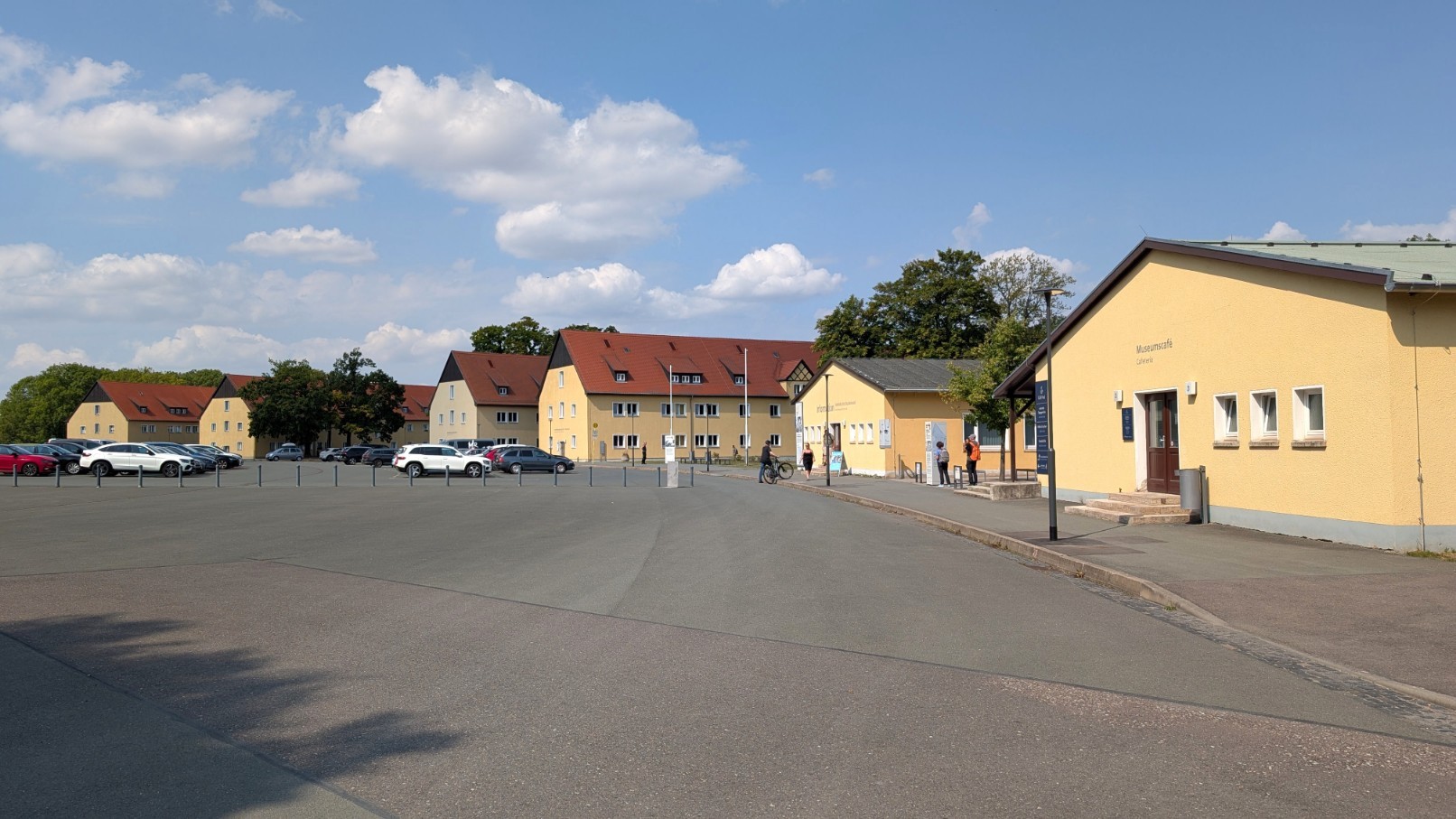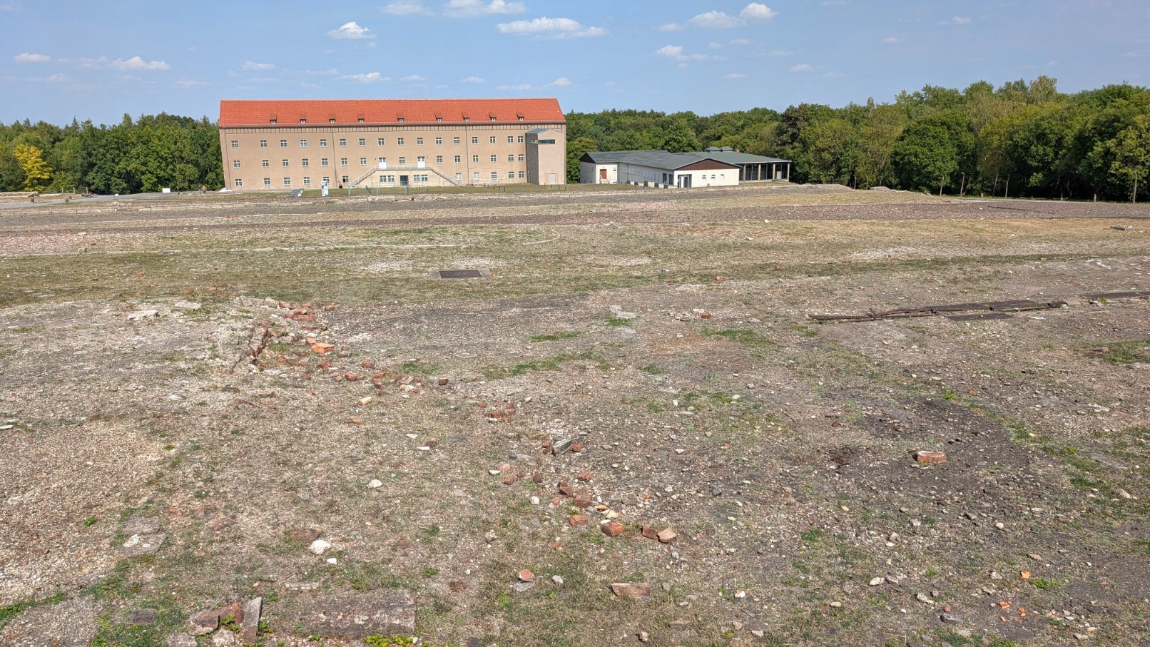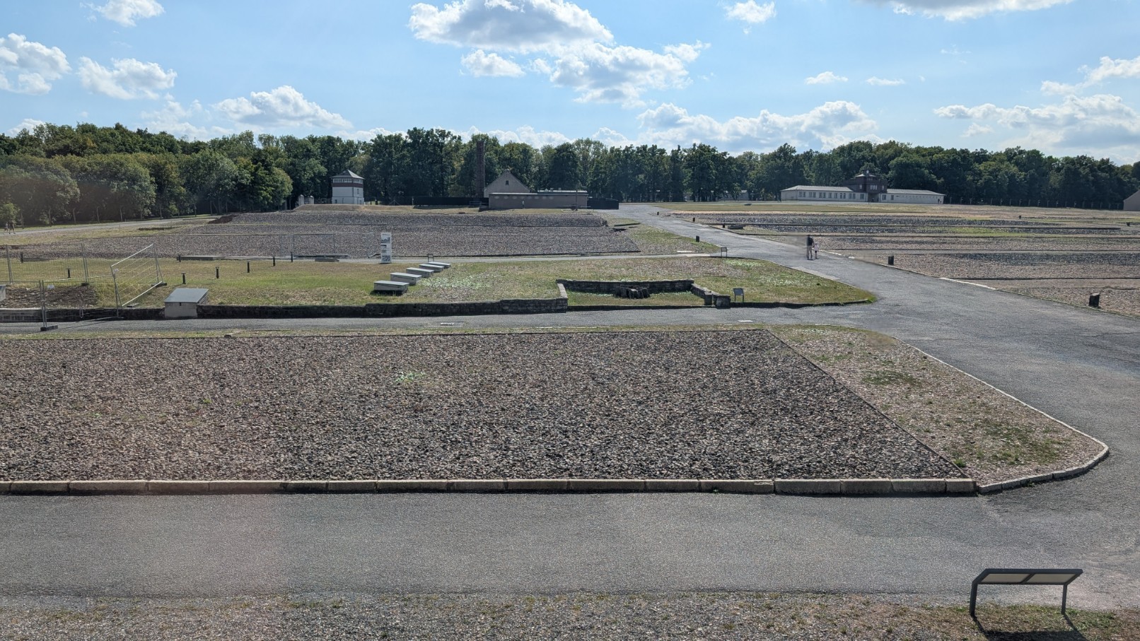Die Struktur des Konzentrationslagers war von Beginn an auf totale Kontrolle und Effizienz ausgerichtet. Das Gelände gliederte sich in klar voneinander abgegrenzte Zonen: Im Zentrum befand sich das sogenannte „Schutzhaftlager“, in dem die Häftlinge unter katastrophalen Bedingungen in hölzernen Baracken untergebracht waren. Daran schloss sich der weitläufige SS-Bereich an – mit Hundertschaftsgebäuden, Kasernen, Werkstätten und der markanten Kommandantur, die als Verwaltungszentrum diente. Mit Beginn des Krieges kam ein dritter Komplex hinzu: der Industrie- und Produktionsbereich, in dem Rüstungsunternehmen wie die Gustloff-Werke Häftlinge zur Zwangsarbeit einsetzten. Eine zentrale Achse des Lagers bildete der Carachoweg, der entlang der südlichen Begrenzung verlief. Er verband die Kommandantur mit den Dienststellen der SS und fungierte als interne Hauptstraße – Symbol der militärisch-bürokratischen Ordnung, die das Lager prägte.