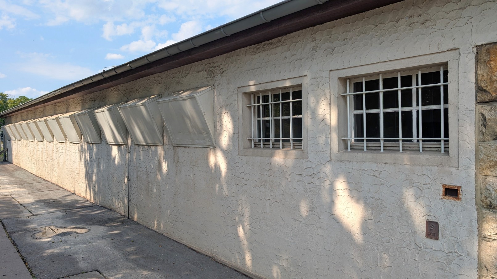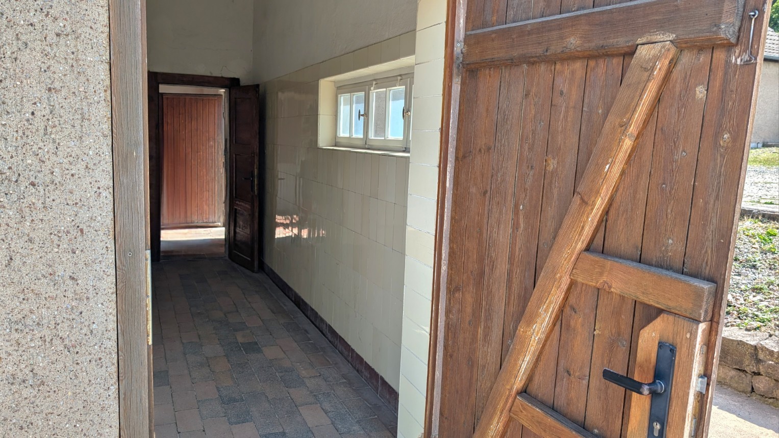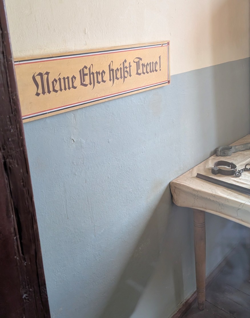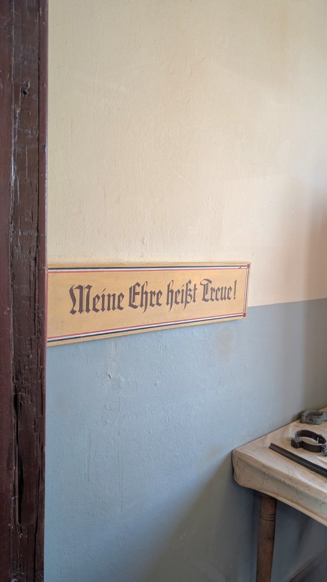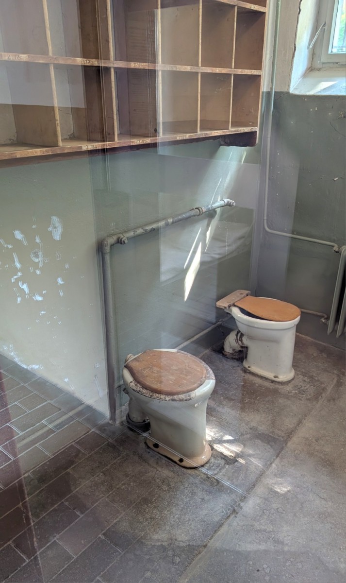 Das Kammer- bzw. Effektengebäude war das größte Bauwerk im Lager und fungierte als zentrale Drehscheibe der Entindividualisierung. Hier mussten Neuankömmlinge ihre gesamte Zivilkleidung und persönlichen Gegenstände abgeben – alles wurde registriert, katalogisiert und damit Teil der bürokratischen Aktenwelt der SS. Im Gegenzug erhielten die Häftlinge ihre Lagernummer, die ihnen fortan als Ersatz für den Namen diente, sowie die standardisierte Häftlingskleidung mit den farbigen Stoffwinkeln des nationalsozialistischen Kategoriensystems. Dieser Akt markierte die vollständige Entrechtung: Aus Menschen mit Biografie wurden „Fälle“ in den Effektenbüchern, reduziert auf Nummern und Symbole. Das Gebäude verkörperte damit den Übergang von der äußeren Welt in das totalitäre System des Lagers – die scheinbar geordnete Verwaltungsprozedur, die in Wahrheit den Beginn der systematischen Entpersönlichung und Entrechtung bedeutete.