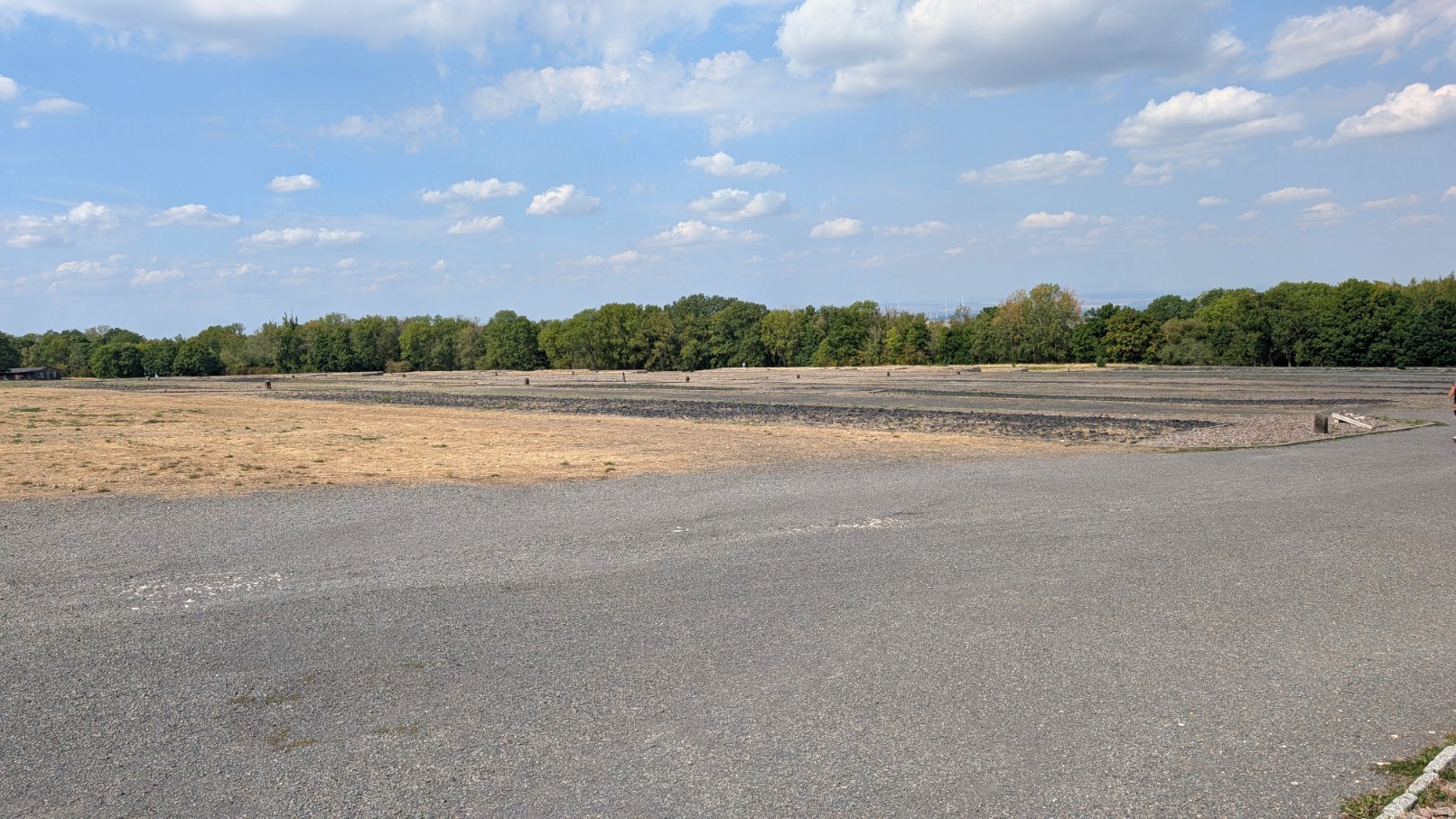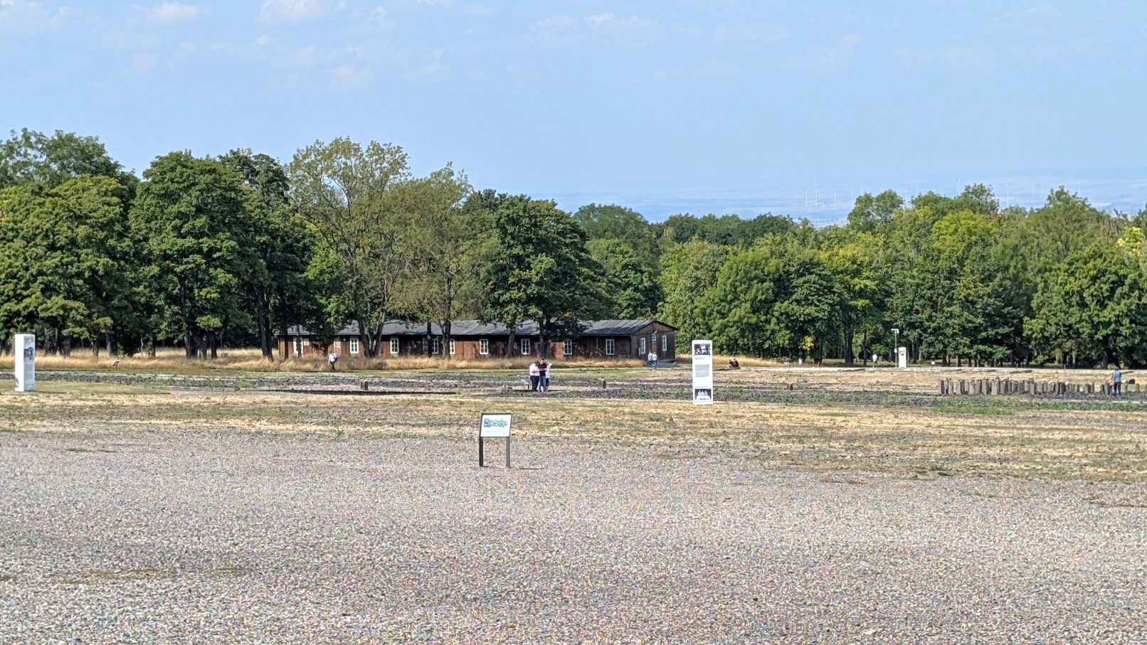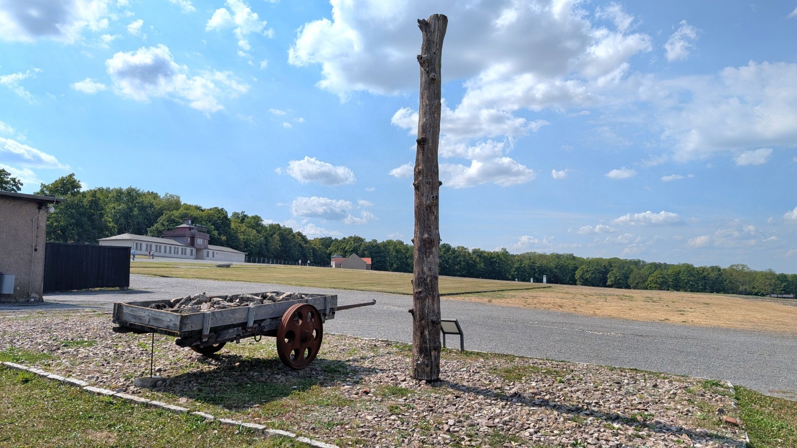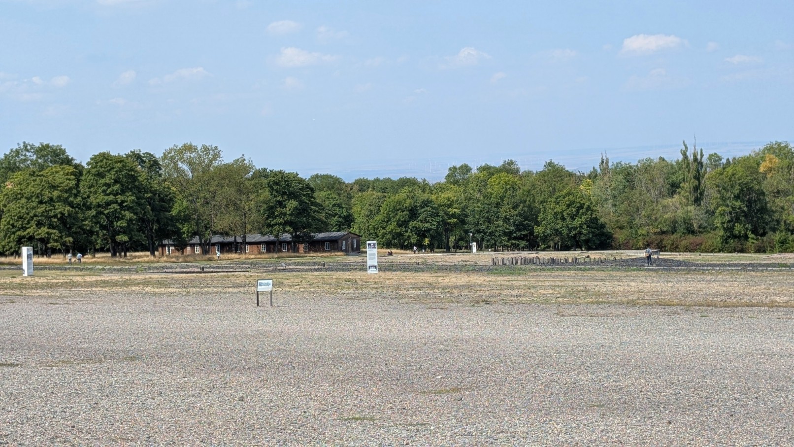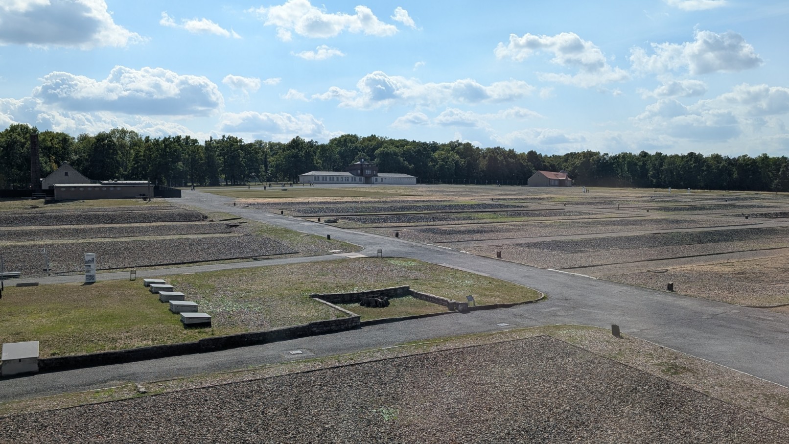Der Appellplatz bildete das sichtbare und symbolische Zentrum des Lageralltags. Hier mussten die Häftlinge morgens und abends zu stundenlangen Zählappellen antreten – oft bei eisiger Kälte oder brütender Hitze, unter den Blicken und Gewehrläufen der SS-Wachposten in den umliegenden Türmen. Jeder Fehlbestand, sei es durch Tod, Krankheit oder Flucht, führte zu zusätzlichen Strafappellen, die bis zur völligen Erschöpfung andauern konnten. Der Platz war damit nicht nur Ort der Registrierung, sondern auch Bühne für öffentliche Demütigungen und Gewalt: Prügelstrafen, Exekutionen oder gezielte Schikanen wurden hier vor den Augen aller vollzogen. Als Zentrum des Zähl- und Strafrituals verkörperte der Appellplatz die totale Kontrolle des Lagerregimes – ein permanenter Akt der Unterwerfung, sichtbar gemacht im Alltag der Gefangenen.