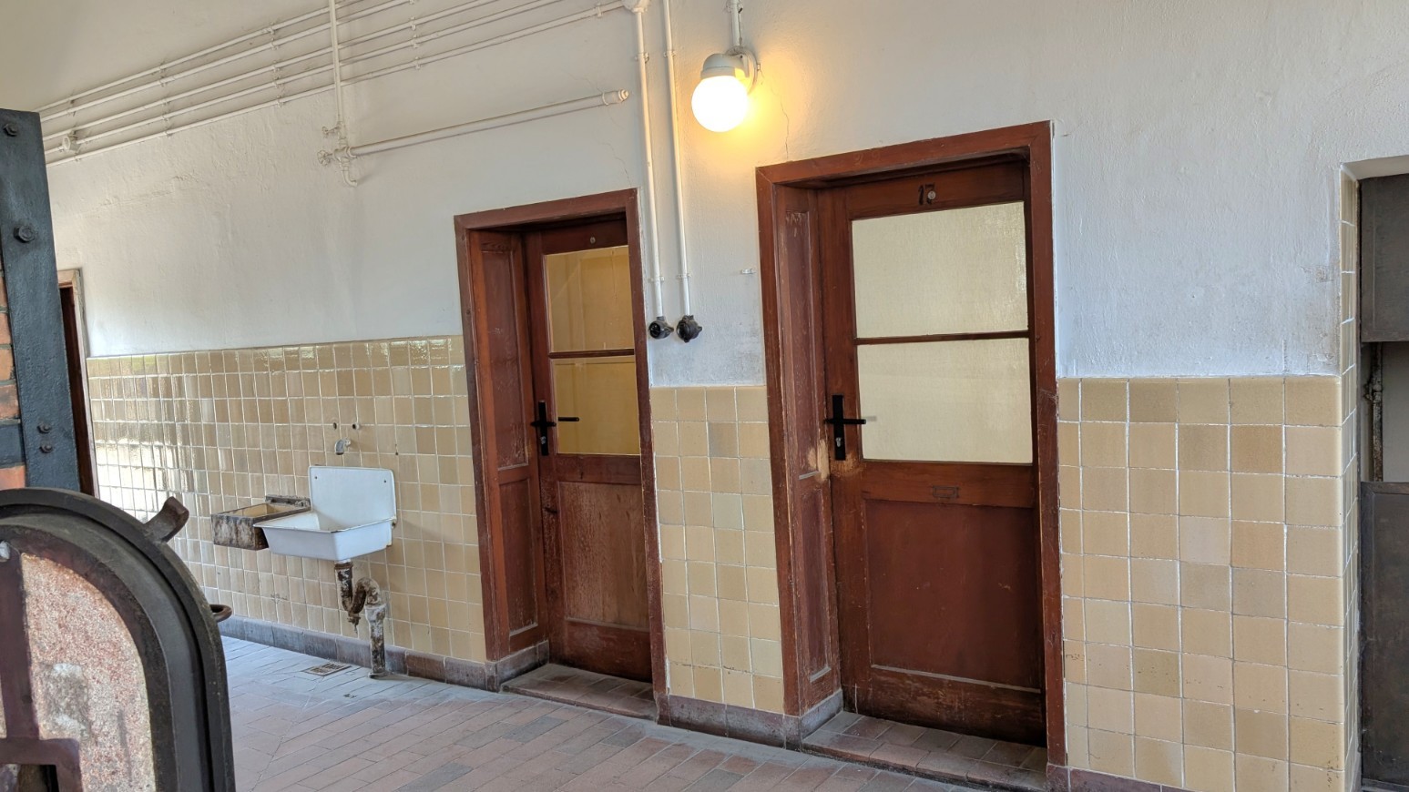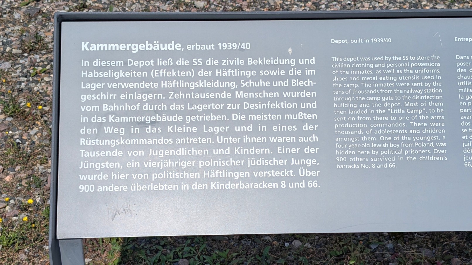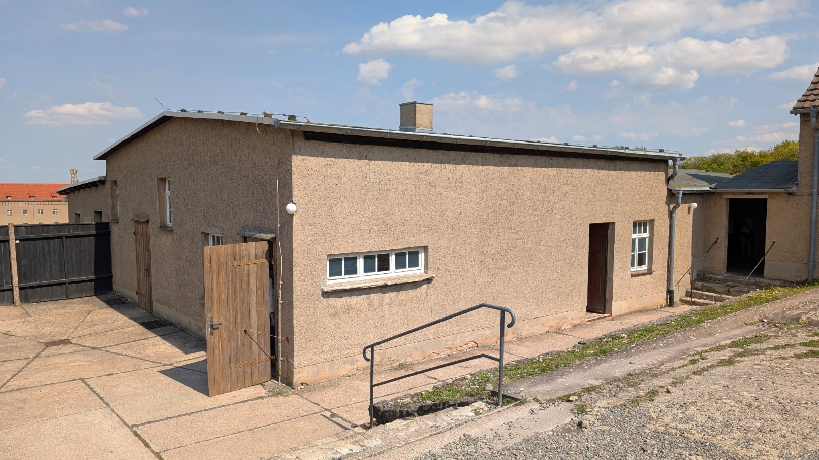 Die sogenannten „Kammern“, auch als Kammer- oder Effektengebäude bezeichnet, waren der erste Ort, den neu eingelieferte Häftlinge im Lager durchlaufen mussten – eine regelrechte Schleuse der Entmenschlichung. Hier mussten die Ankommenden ihre gesamte Zivilkleidung und persönlichen Gegenstände abgeben, die katalogisiert, eingelagert oder einbehalten wurden. Im Gegenzug erhielten sie die standardisierte Häftlingskleidung: grobe Stoffanzüge, oft schlecht sitzend und unzureichend gegen Kälte oder Nässe. Jeder Gefangene bekam zudem eine Lagernummer, die fortan seine Identität im System ersetzte.