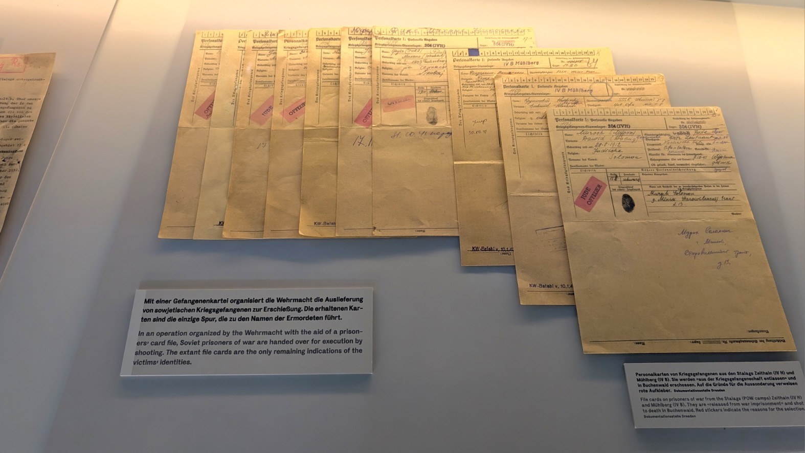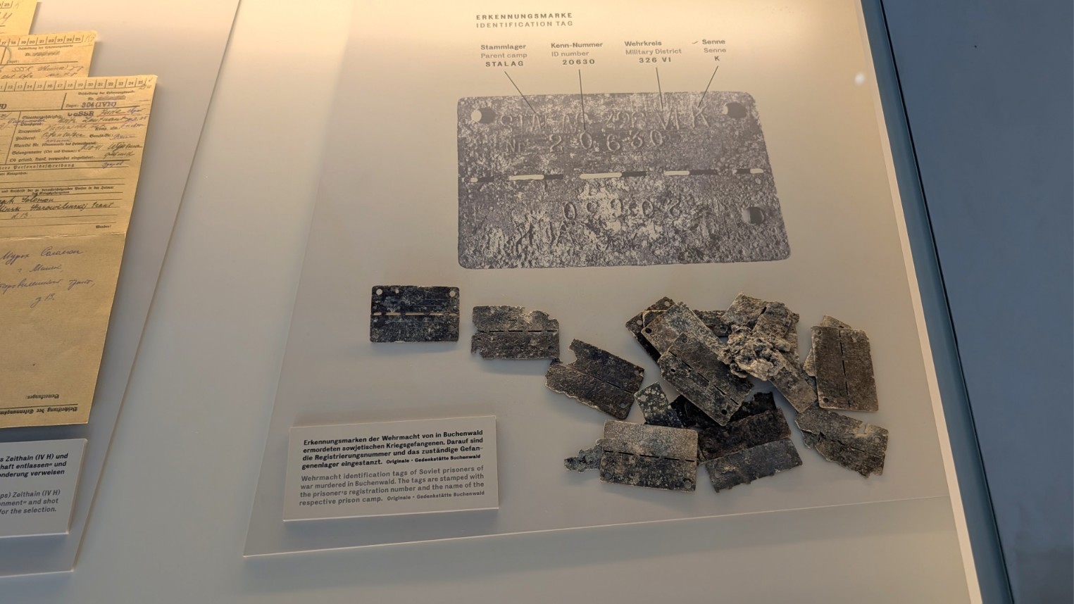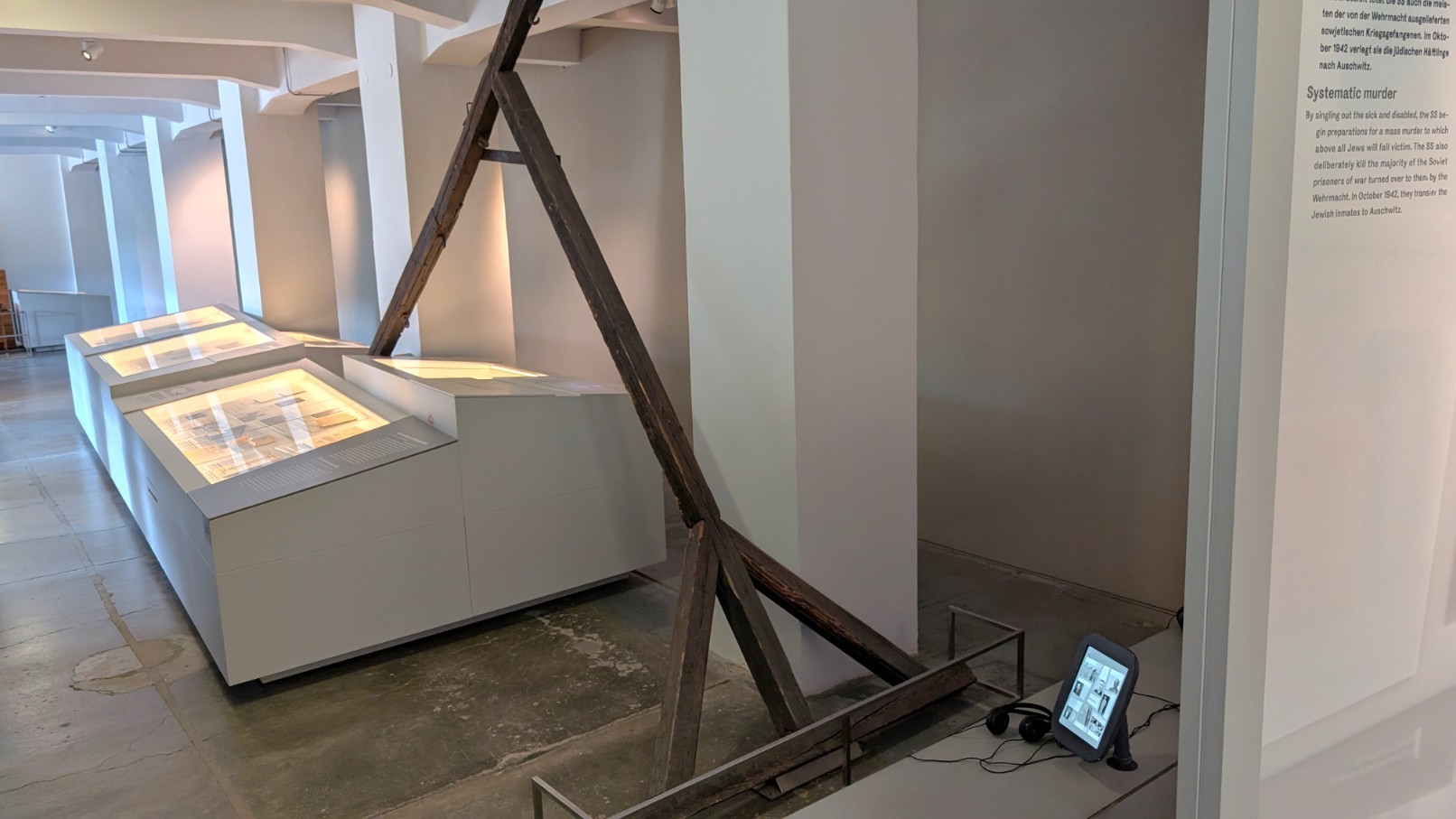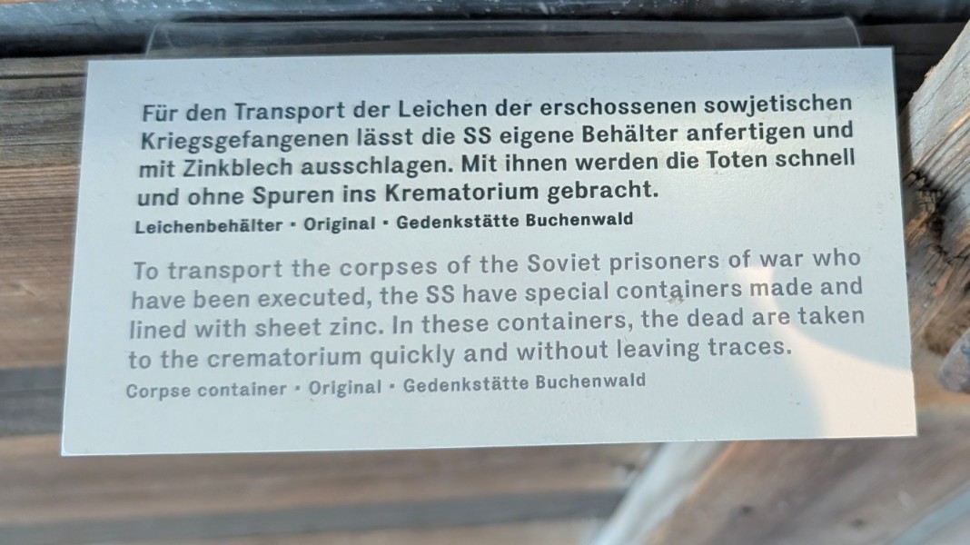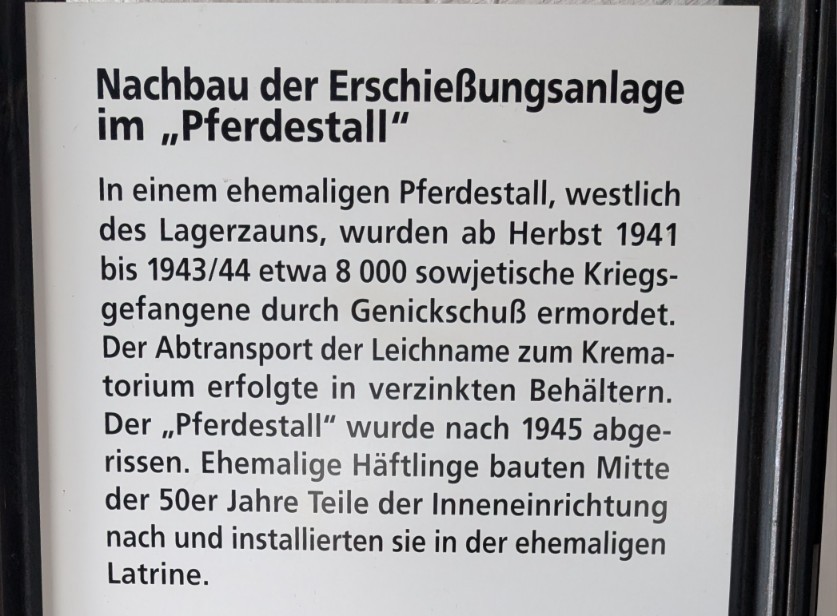 Hinter der Fassade scheinbarer Ordnung und Verwaltungsroutine verbarg sich in Buchenwald der organisierte Massenmord. Zwischen 1941 und 1944 errichtete die SS in einem zu diesem Zweck umgebauten Pferdestall eine getarnte Genickschussanlage. Offiziell wurden die sowjetischen Kriegsgefangenen, die nach Buchenwald gebracht wurden, zu einer „ärztlichen Untersuchung“ vorgeladen. In Wirklichkeit führte der Weg in die getarnte Tötungsstätte, wo sie durch einen Schuss in den Hinterkopf ermordet wurden. Auf diese Weise wurden über 8.000 sowjetische Kriegsgefangene heimlich exekutiert. Der perfide Charakter dieser Einrichtung – die Tarnung als medizinische Kontrolle – unterstreicht den systematischen, bürokratisch durchorganisierten Charakter des Massenmordes, der im Lageralltag hinter Akten und Befehlen verborgen blieb.