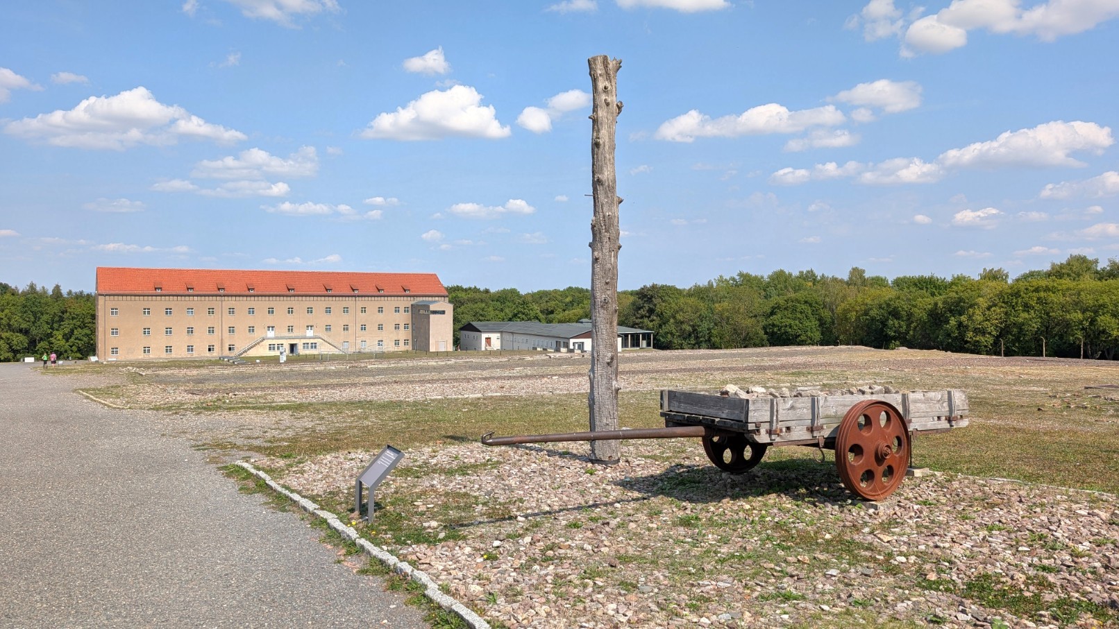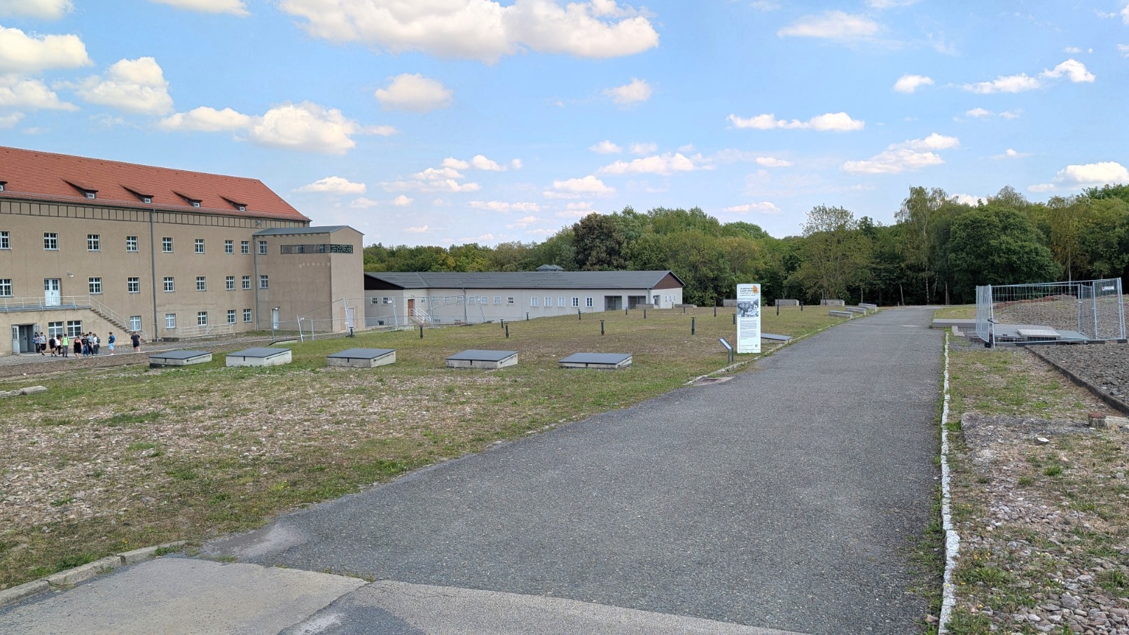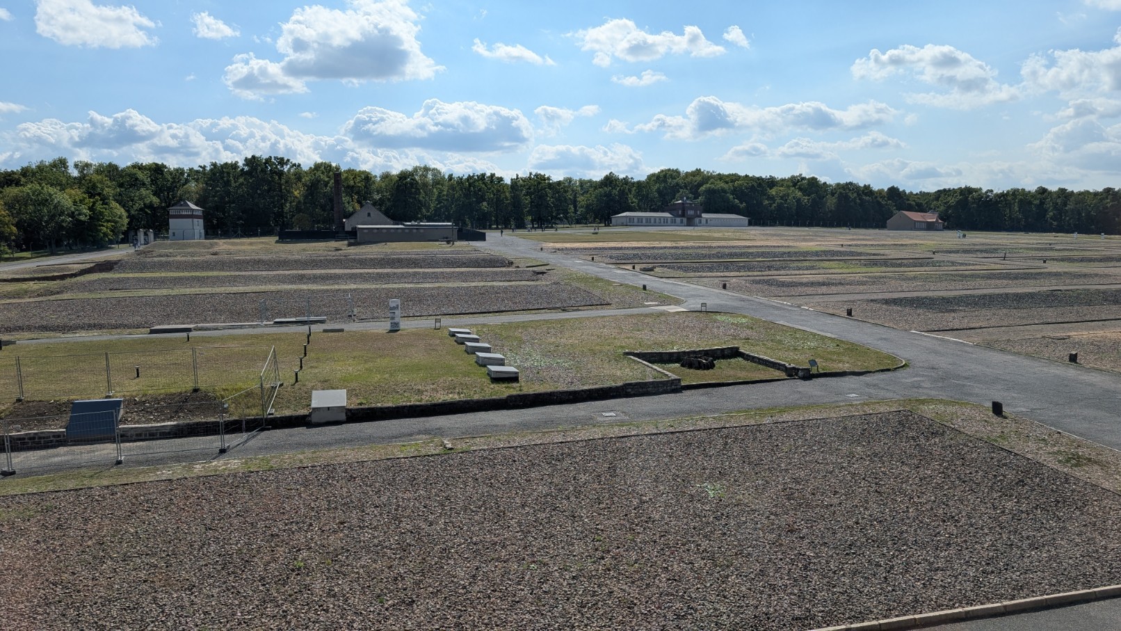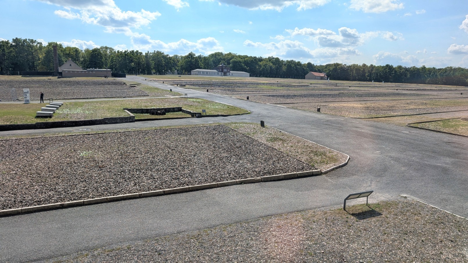 Der Carachoweg bildete eine zentrale Achse innerhalb des Lagerkomplexes – eine nüchterne, scheinbar unscheinbare Verbindungsstraße, die jedoch das organisatorische Rückgrat der SS-Verwaltung darstellte. Entlang dieses Weges lagen die Büros der Kommandantur, Stabs- und Verwaltungsräume, in denen Transporte registriert, Arbeitskommandos eingeteilt und die bürokratische Infrastruktur des Terrors gesteuert wurden. Während im Häftlingslager wenige Meter entfernt Menschen hungerten, gefoltert und ermordet wurden, herrschte hier der Anschein geordneter Amtsroutine. Der Carachoweg verdeutlichte damit den Kern der nationalsozialistischen Lagerrealität: die enge Verzahnung von kalter Verwaltungsbürokratie und systematischer Gewaltpraxis – der Verwaltungsweg neben der Gewaltmaschine.