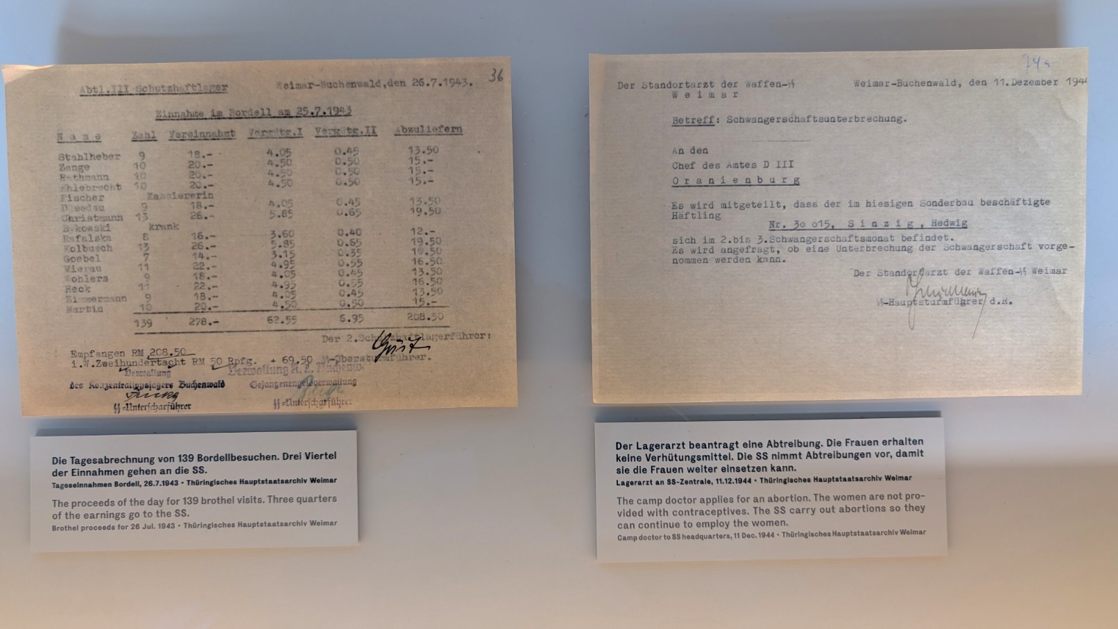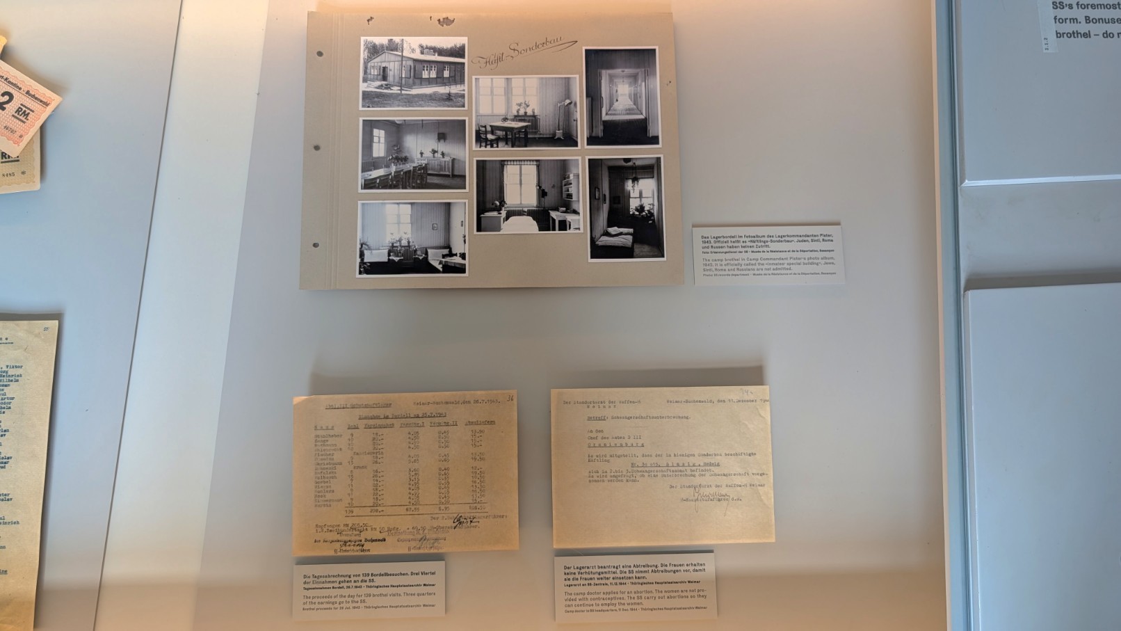 Die Frauen, die in Buchenwald im Bordell eingesetzt wurden, stammten fast ausschließlich aus dem Frauen-Konzentrationslager Ravensbrück. Sie wurden unter Zwang in das System gedrängt und mussten Häftlinge bedienen, die die SS nach eigenen Kriterien auswählte – in der Regel sogenannte Funktionshäftlinge oder privilegierte Arbeitskommandos. Der Zugang war somit streng reglementiert und keineswegs allgemein möglich. Von einer Vergütung konnte keine Rede sein: Die Häftlinge zahlten für den Besuch mit eigens geschaffenen Lagergeldscheinen, die reale Kaufkraft hatten einzig die SS-Angehörigen, die das System kontrollierten. Für die betroffenen Frauen bedeutete der Bordell-Einsatz eine doppelte Opferrolle – als KZ-Häftlinge und als Zwangsprostituierte in einem perfiden Instrument der Disziplinierung.