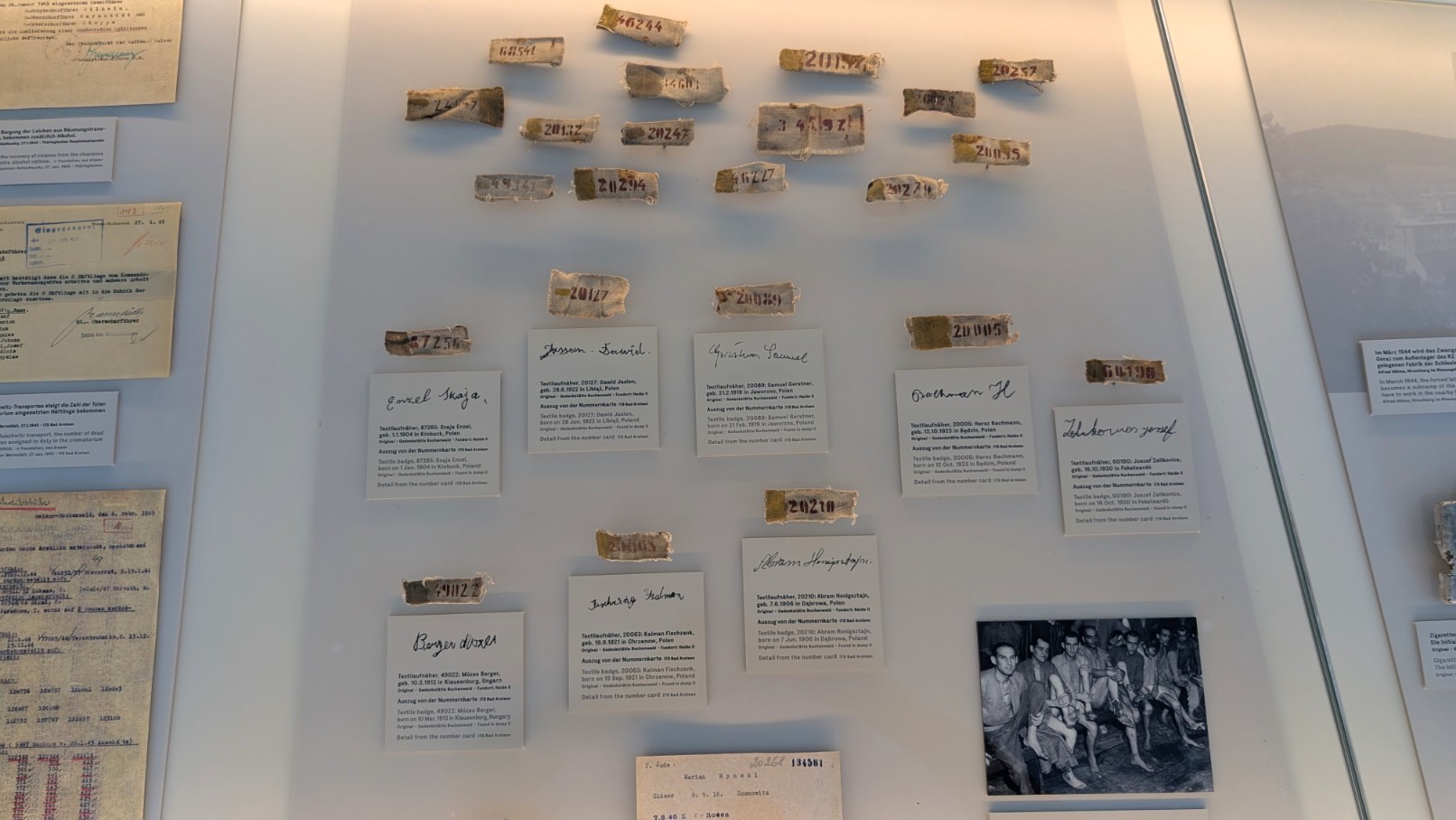 Für die in Buchenwald verbliebenen jüdischen Häftlinge galten besonders entwürdigende Sonderregelungen. Sie wurden in separaten Lagerbereichen untergebracht, bewusst isoliert von anderen Häftlingsgruppen. Zudem wies man ihnen die schwersten und gefährlichsten Arbeitskommandos zu, in Steinbrüchen, Erdarbeiten oder in der Leichenentsorgung. Hinzu kamen regelmäßige Selektionen, bei denen Alte, Kranke oder geschwächte Männer ausgesondert und in den Tod geschickt wurden. Diese Sonderbehandlung spiegelte die zentrale Rolle wider, die antisemitische Verfolgung auch innerhalb der Lagerpraxis spielte – ein System der systematischen Entwürdigung, das mit der Entrechtung im Alltag der deutschen Gesellschaft eng verzahnt war.