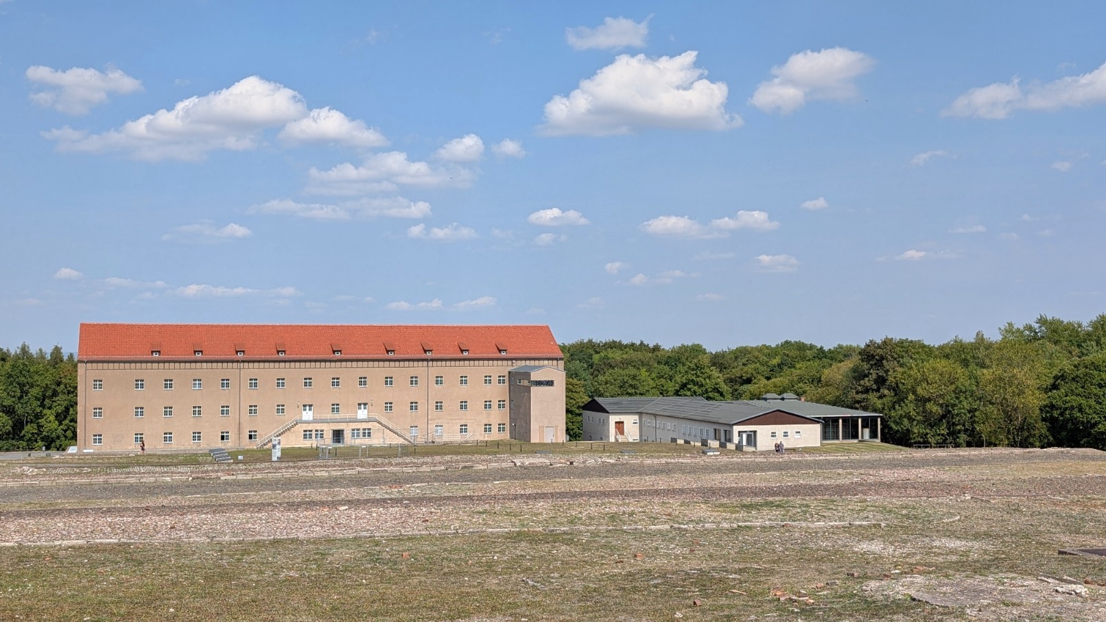 Die SS-Strukturen im Lager waren klar gegliedert. Sie organisierten sich in Hundertschaften, die Disziplin, Kontrolle und militärische Ausbildung verbanden. Südlich des Häftlingsbereichs befand sich das SS-Übungslager, das in strengem Halbrund angelegte Hundertschaftsgebäude umfasste – mit Kasinos, Waffenkammern, Exerzierplätzen und Unterkünften. Diese kasernenartige Anlage wirkte wie eine militärische Kleinstadt, unmittelbar neben dem Schutzhaftlager, und verdeutlichte die enge Verzahnung von paramilitärischer Ausbildung, Bürokratie und dem tödlichen Alltag der Häftlinge.