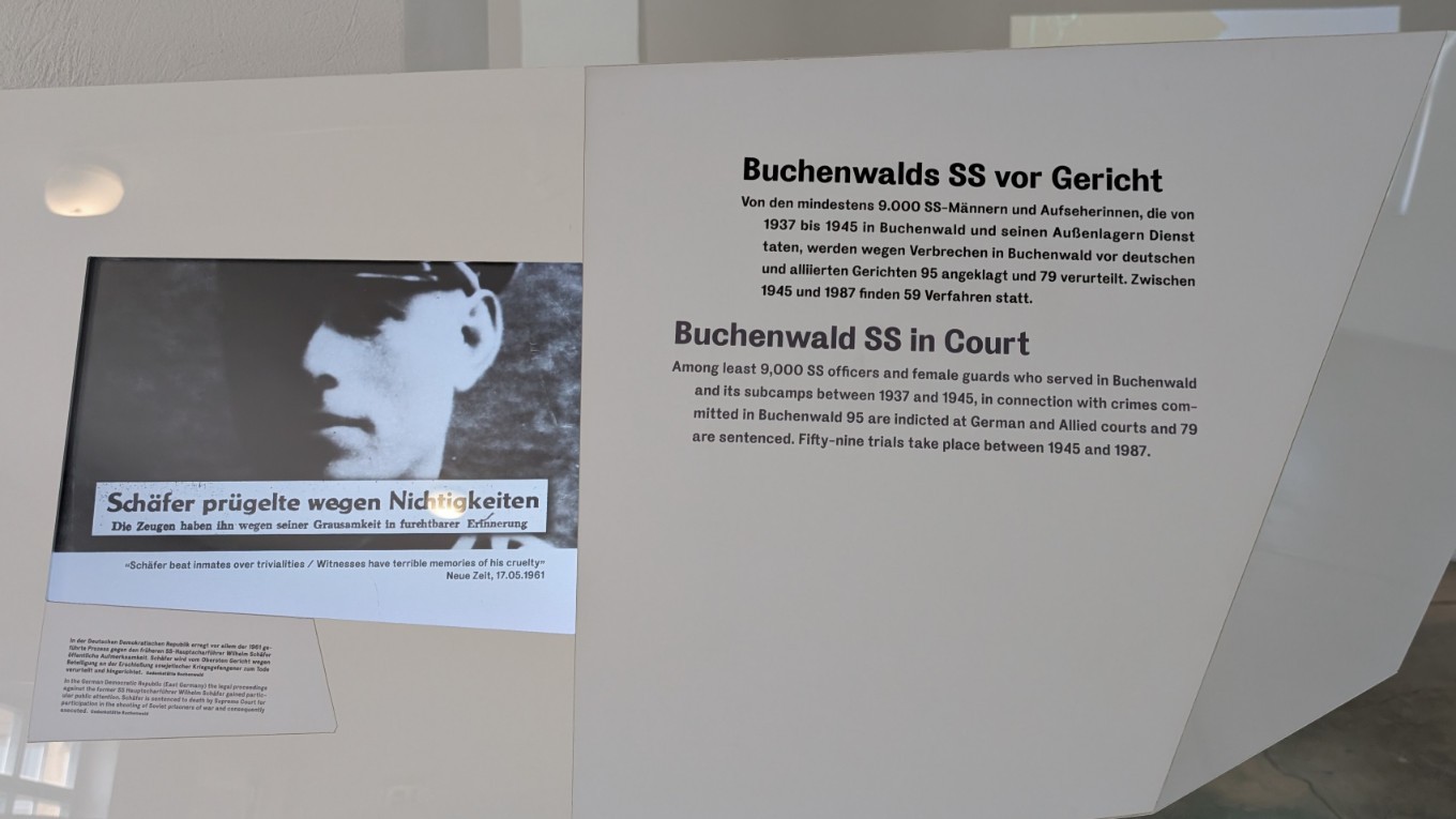 Erster Lagerkommandant von Buchenwald war ab dem 1. August 1937 Karl-Otto Koch, ein SS-Offizier, der das System der skrupellosen Ausbeutung und persönlichen Bereicherung etablierte. Unter seiner Führung entwickelte sich das Lager zu einem Ort systematischer Gewalt, Korruption und Terror. Doch Koch fiel schließlich den eigenen Reihen zum Opfer: 1943 wurde er von der SS-Justiz unter anderem wegen Unterschlagung, Betrugs und Mordes angeklagt. Zwei Jahre später, im April 1945, kurz vor Kriegsende, wurde er von einem SS-Standgericht hingerichtet. Sein Nachfolger wurde am 1. Januar 1942 Hermann Pister, der die Lagerführung bis zur Befreiung im April 1945 innehatte. Pister war für die Ausweitung des Zwangsarbeitssystems verantwortlich und trug die Verantwortung für zehntausende Tote. Im Buchenwald-Prozess von 1947 wurde er von einem US-Militärgericht zum Tode verurteilt, starb jedoch noch vor der Vollstreckung im Gefängnis.