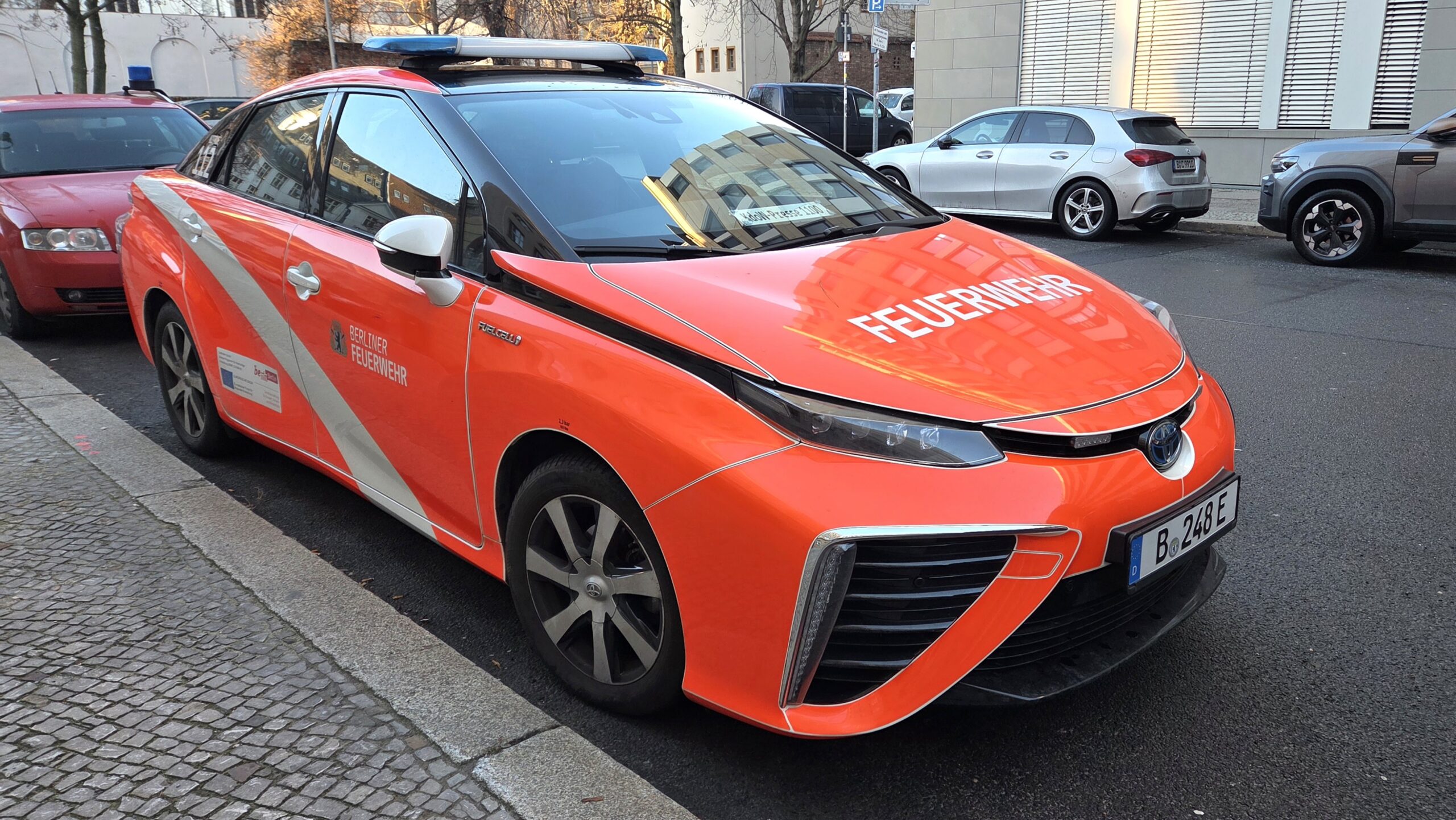 Die Berliner Feuerwehr setzt seit einiger Zeit auf eine zukunftsweisende Antriebstechnologie im Bereich ihrer Sonder- und Einsatzleitfahrzeuge (ELW). Hierbei handelt es sich um vier Toyota Mirai, die im Rahmen eines EU-Vergabeverfahrens beschafft wurden und als sogenannte Einsatzleitwagen-Erkunder (ELW-Erk) dienen. Zwei dieser Fahrzeuge tragen die internen Bezeichnungen ELW Presse 1193 und ELW-Erk mit den amtlichen Kennzeichen B-248 E sowie B-247 E. Gerade im urbanen Umfeld Berlins zeigt sich die Wasserstoff-Brennstoffzelle als umweltfreundliche Alternative zu konventionellen Antrieben: Sie verursacht keinerlei CO₂-Emissionen und arbeitet dabei sehr geräuscharm.